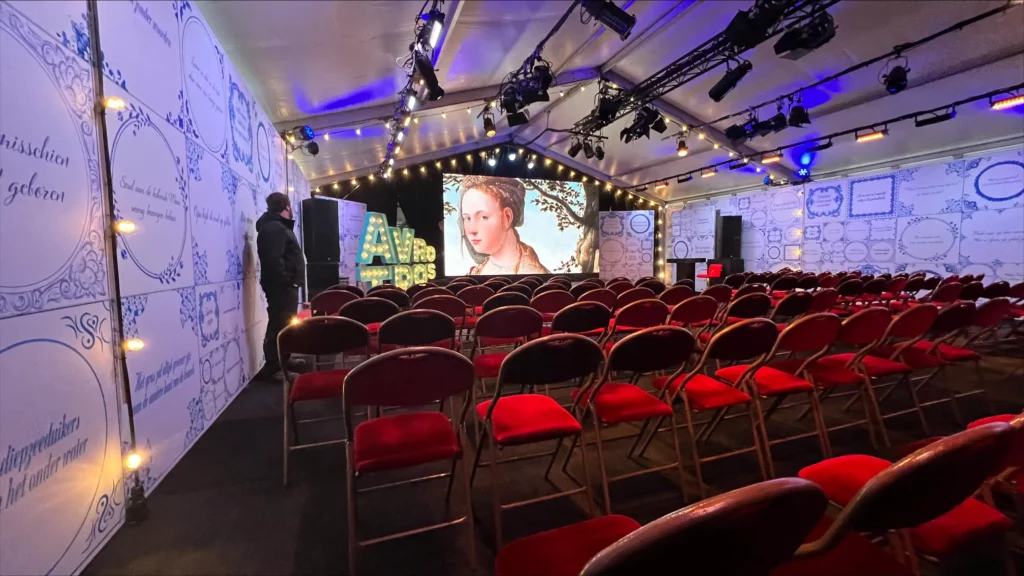 In de entree werden de gasten alvast in de sfeer gebracht door de vertoning van oude beelden op 5 LED totems. In de zaal waren wij verantwoordelijk voor de geluidsversterking, AV regie en LEDscherm 2.6mm.
