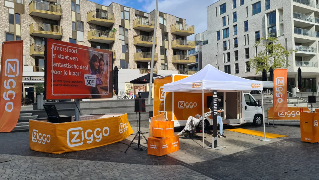 Ter ondersteuning van de fieldmarketing de audiovisuele techniek verzorgt voor dit VR flight event. Mobiele LED trailer 6m2 incl. audio en branding.